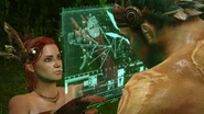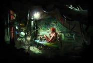 In contrast to Monkey who relies on his survival skills and power, Trip is a 19-year old who originated in more civilized areas. She comes from a wind farming community. In this community, the people are known for their expertise of reprogramming old technology. Trip is also extremely skilled at reprogramming. Regardless of her skills, she still can't survive alone and needs a bodyguard. By using Monkey's strength and combat skills, she has a chance to achieve freedom. Trip hacks into a slave headband and places it on Monkey's head, forcing him to escort her back home or suffer a painful death.